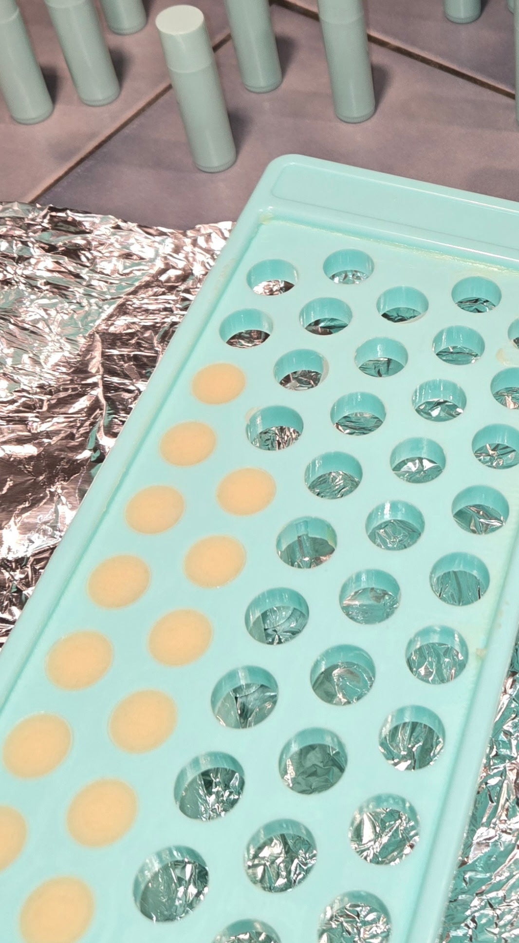 Beeswax, Shea Butter, Cocoa Butter, peppermint essential oils